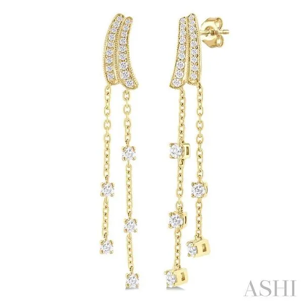 1/2 Ctw Curved Twin Pod Round Cut Diamond Chain Dangler Long Earring in 10K Yellow Gold Hart's Jewelers Grants Pass, OR