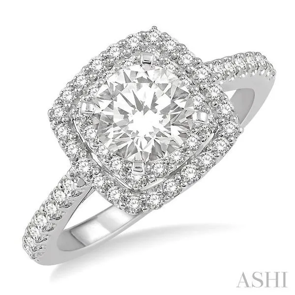 1 1/3 Ctw Twin Halo Diamond Engagement Ring With 3/4 ct Round Cut Center Stone in 14K White Gold Hart's Jewelers Grants Pass, OR