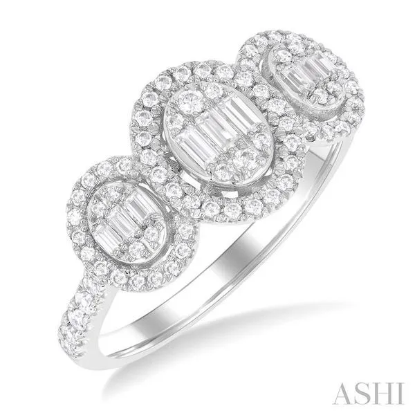 5/8 Ctw Oval Shape Past, Present & Future Fusion Baguette and Round Cut Diamond Engagement Ring in 14K White Gold Hart's Jewelers Grants Pass, OR