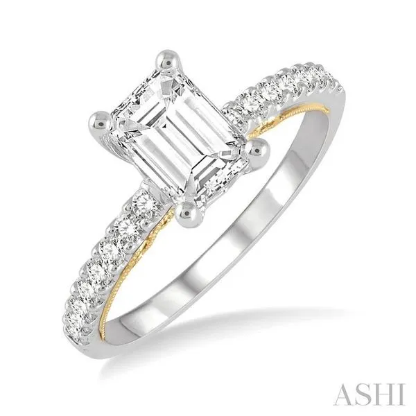 1/4 ctw Emerald Shape Round Cut Diamond Semi-Mount Engagement Ring in 14K White and Yellow Gold Hart's Jewelers Grants Pass, OR
