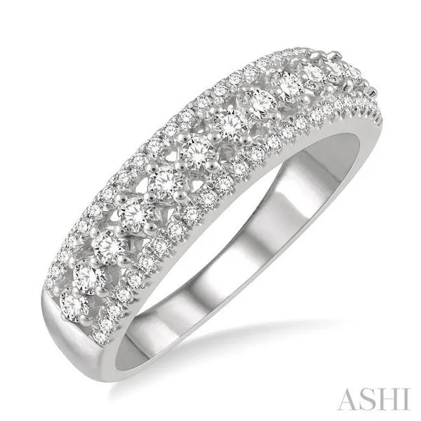 5/8 ctw Triple Row Round Cut Diamond Fashion Band in 14K White Gold
