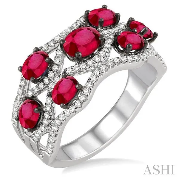 5x4 MM Oval Cut Ruby, 4x3 MM Oval Cut Ruby and 3/8 Ctw Round Cut Diamond Ring in 14K White Gold Hart's Jewelers Grants Pass, OR