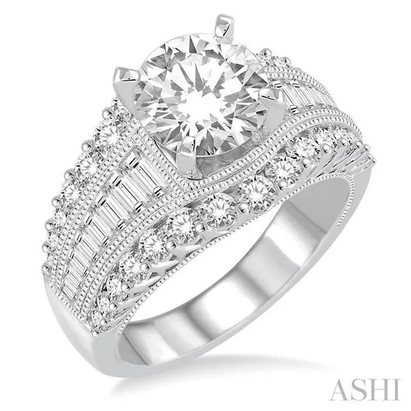 1 1/2 Ctw Baguette and Round Cut Diamond Round Shape Semi-Mount Engagement Ring in 14K White Gold Hart's Jewelers Grants Pass, OR