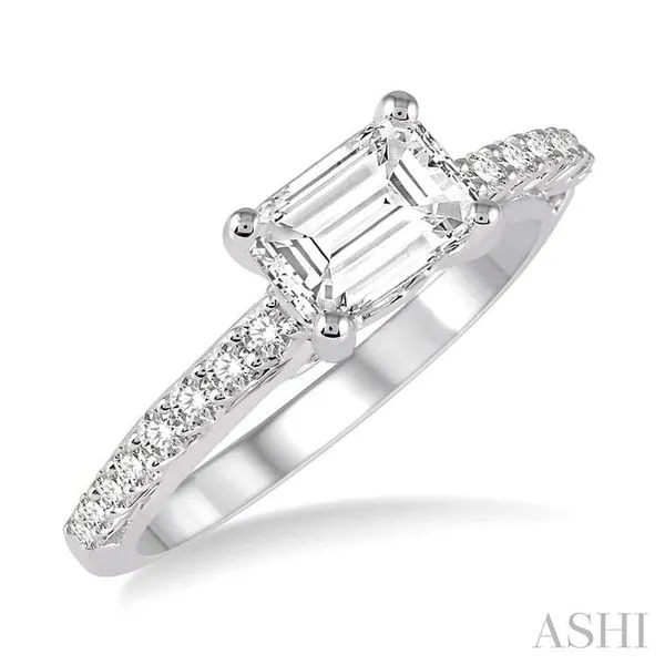 1/4 ctw Emerald & Round Cut Diamond Semi-Mount Engagement Ring in 14K White Gold Hart's Jewelers Grants Pass, OR