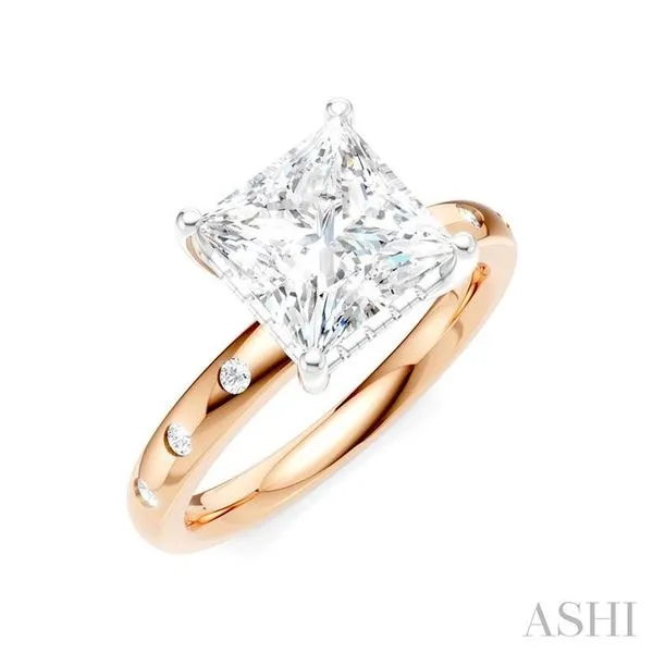 3. 1/5 Ctw Princess Shape Round Cut Diamond Semi-Mount Engagement Ring in 14K Rose and White Gold