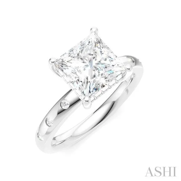3. 1/5 Ctw Princess Shape Round Cut Diamond Semi-Mount Engagement Ring in 14K White Gold