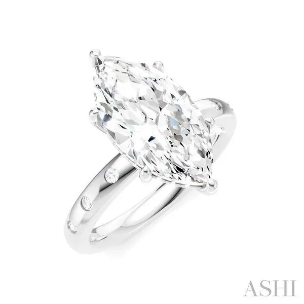 3. 1/6 Marquise Shape Round Cut Diamond Semi-Mount Engagement Ring in 14K White Gold