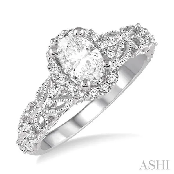 3/4 Ctw Vintage Inspired Diamond Halo Engagement Ring with 1/2 Ct Oval Cut Center Diamond in 14K White Gold Hart's Jewelers Grants Pass, OR